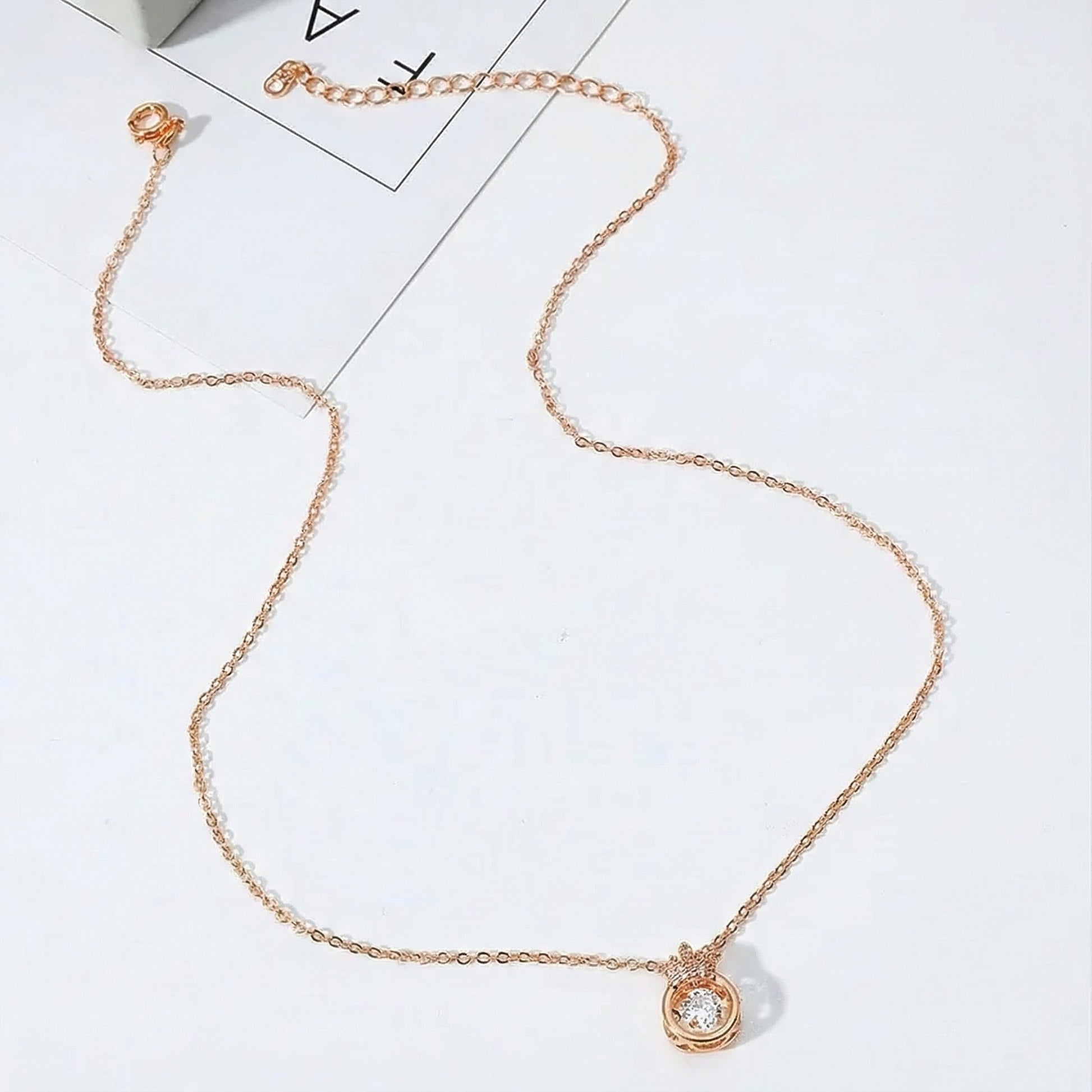 Presentamos nuestro collar de circón palpitante con corona de aleación de oro rosa: ¡un toque real a su colección de joyas!